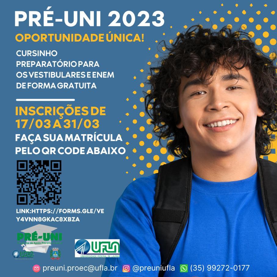 Começaram as inscrições para o curso pré-vestibular gratuito (Pré-Uni), oferecido pela Universidade Federal de Lavras (UFLA) em parceria com a … Leia Mais